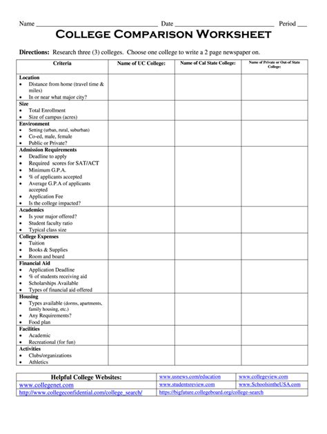 Type (public or private) geographic region. Web bigfuture is a free and personalized online guide to help students plan for college, pay for college, and explore careers. Web college comparison worksheet author:
