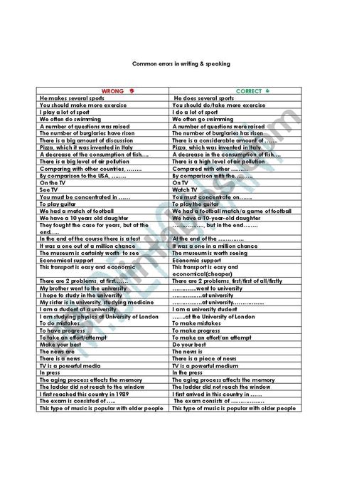 With a partner, discuss how to change each. English as a second language (esl). Web common errors worksheets and online exercises.