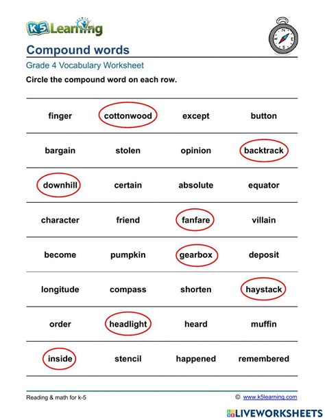 Web students combine words to make grade 3 level compound words. Web fourth grade (grade 4) compound words questions. Web compound words grade 4 vocabulary worksheet circle the compound word in each row.