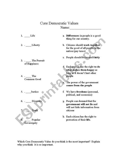 Welcome to esl printables, the website where english language teachers exchange resources: Some of the worksheets displayed are teaching the core democratic values,. In many ways, “values aren’t really a thing at all.