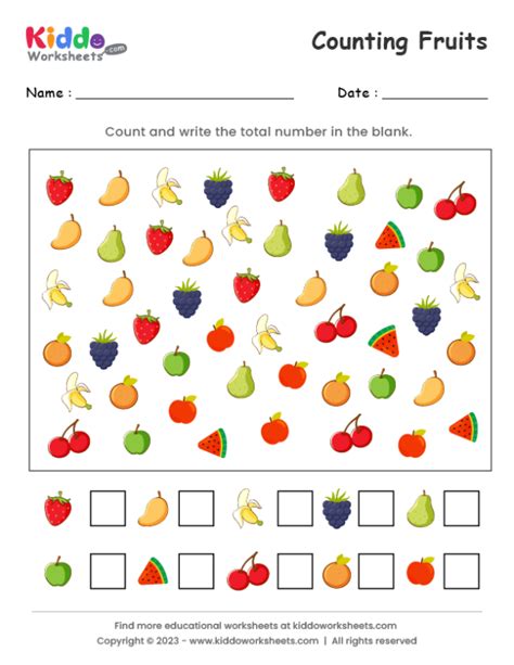 Math, worksheet, numbers, counting, kindergarten Web in this counting fruits worksheet, kids will learn how to count by observing the objects and writing numbers. Kindergarten numbers & counting worksheet keywords: