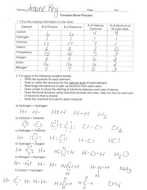 Some of the worksheets for this concept are chemical bonding work answers, bonding basics. # of electrons 15 16 answer key/teacher notes # of valence electrons # of electrons to fill element. Worksheets are chapters 6 and 7 practice work covalent bonds and, bonding basics, covalent bond practice.