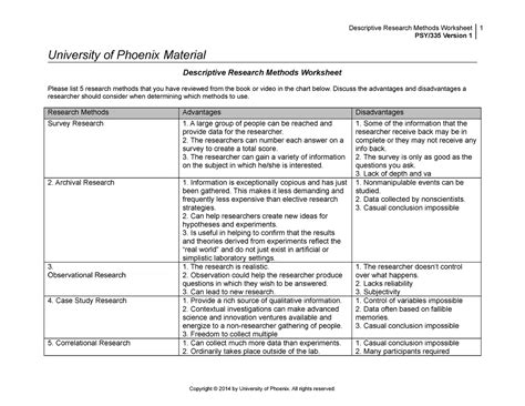 Web descriptive research methods worksheet psy/335 version 1 university of phoenix material descriptive research methods worksheet please list 5 research. Web watch the nonexperimental research methods in psychology video located in this week's electronic reserve readings. Please list 5 research methods that you have reviewed from the book or video in the chart below.