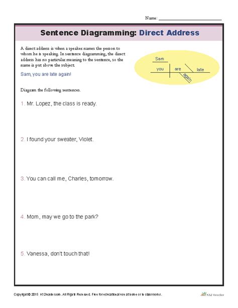 Worksheets Are Commas Around Nouns Of Direct Address Practice, Diagramming Work Name, Direct And.